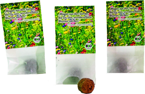 Machen auch Sie Ihre Welt ein bisschen bunter, freundlicher und schöner: Samenkugel dahin werfen, wo bunte Blumen wachsen können. Nach wenigen Wochen erwartet Sie und Ihre Mitmenschen eine blühende Überraschung.